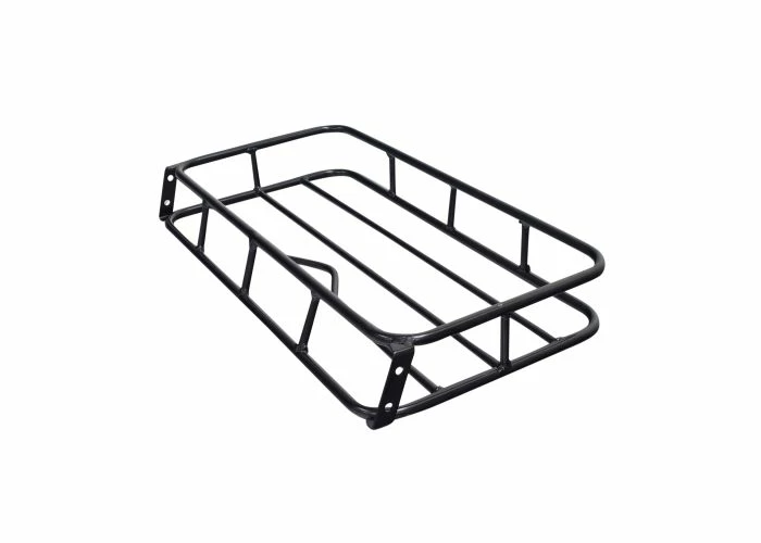 This black enameled steel rear cargo rack measures 25″ long, 13-1/2″ wide, and 3-3/4″ in overall height