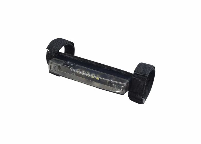 The LED light housing is held to the roll bar with a web and buckle strap so you can mount it wherever you need it. Operation is with a simple toggle switch and there is no wiring involved. No more drilling is required or wrapping the wires to the bar with plastic ties or duct tape. Power for the light is supplied by three AAA batteries.