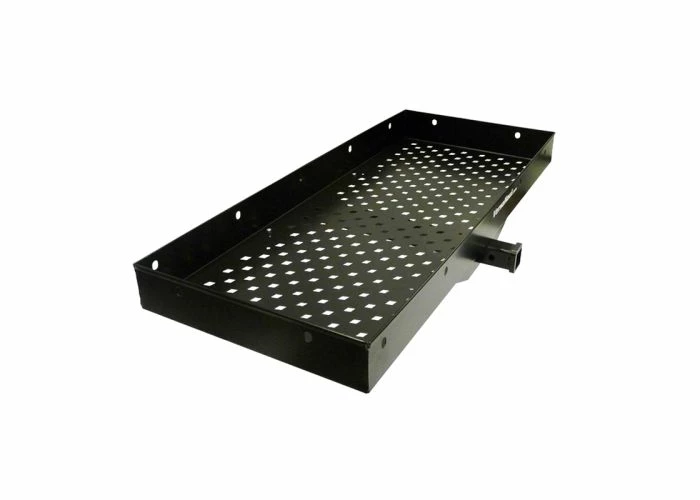 With its 58″ x 25″ x 5-1/2″ of carrying space, this cargo tray is like having a bantam-sized flat-bed that mounts up on any Class III or Class IV trailer hitch. Just think of the possibilities. The assembly is made of steel, right here in America.